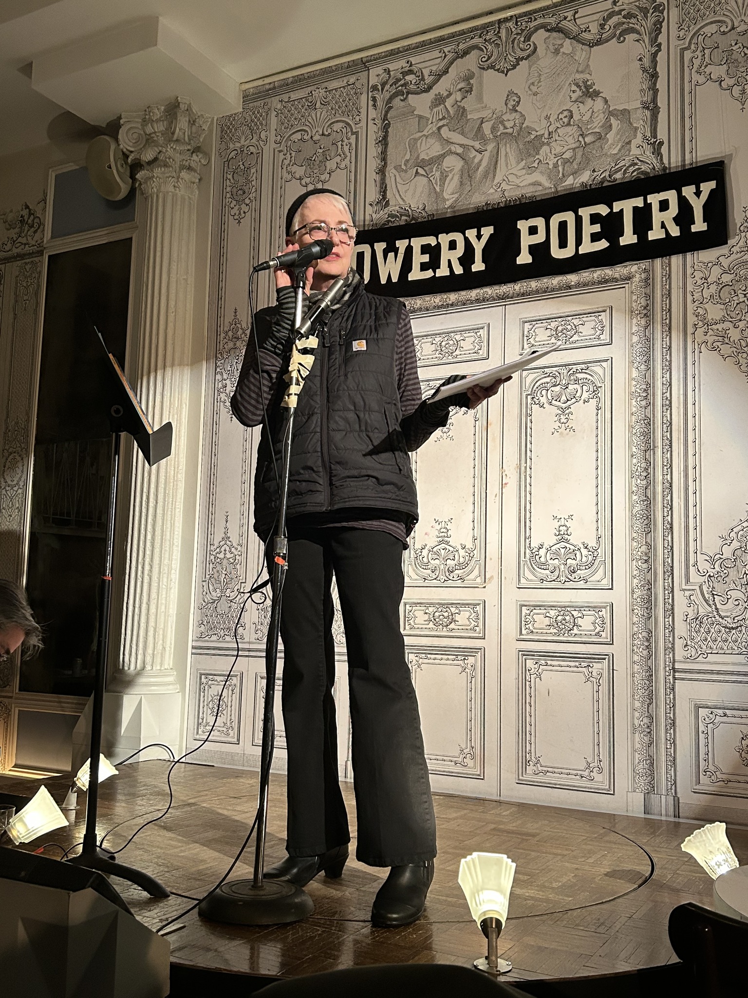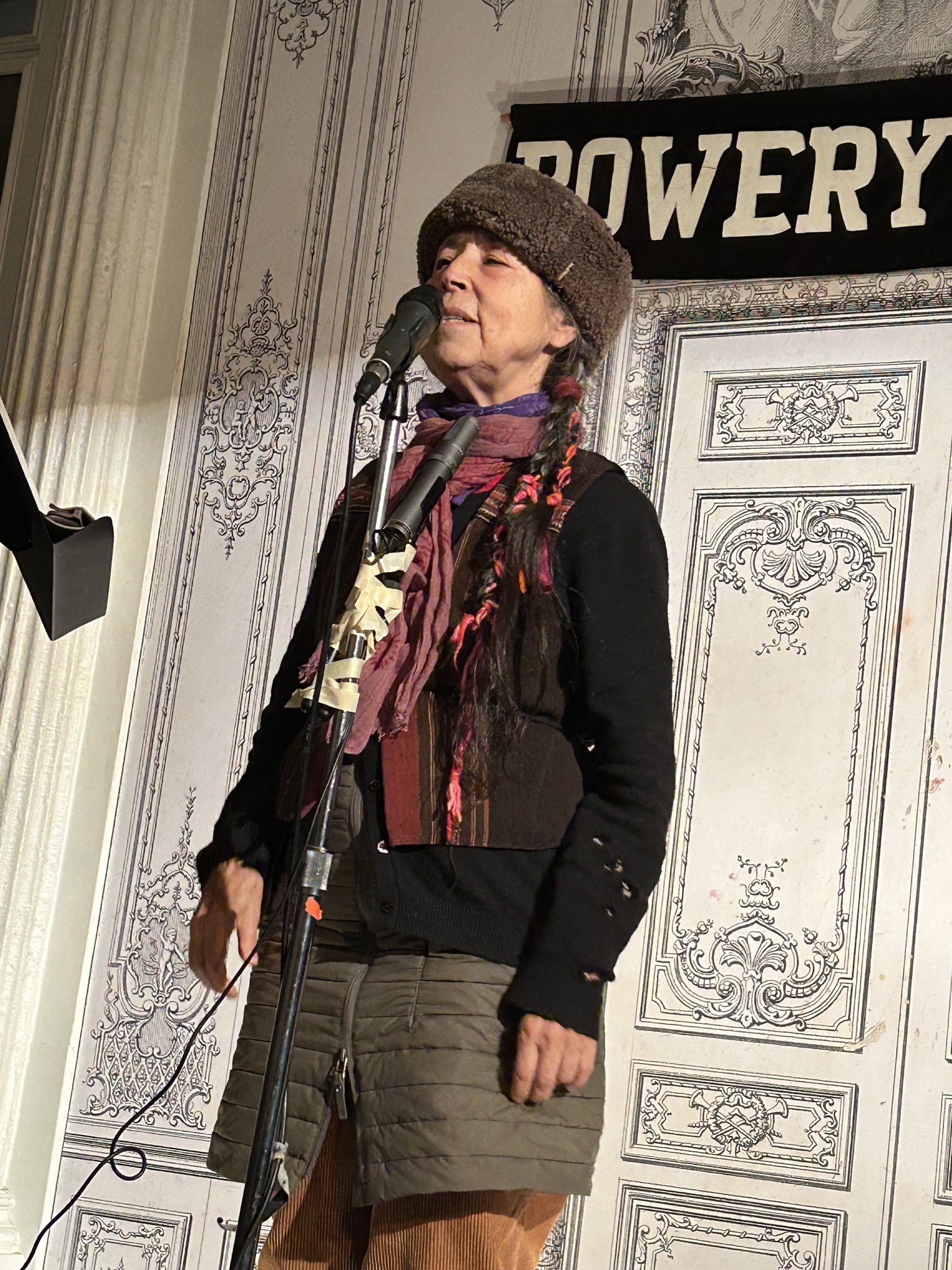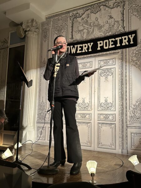 The second of the eight week poetry series “New York Poets” took place at Bowery Poetry on the 20th of January. Although it was a freezing cold night, it was well attended, and the poets Sharon Mesmer and Cecelia Vicuña gave stellar readings to an appreciative deserving audience. I cannot recommend this series enough. It’s organized and hosted by Ed Friedman and Bob Rosenthal, and everyone should get to Bowery Poetry to enjoy their efforts at least once. Not only is it historic, it’s happening fun and features many poets who’ve been participating in the downtown NYC poetry scene for as many as fifty years. Excellent perseverance is receiving its due. Sharon and Cecelia read in the Vimeo below. Enjoy.