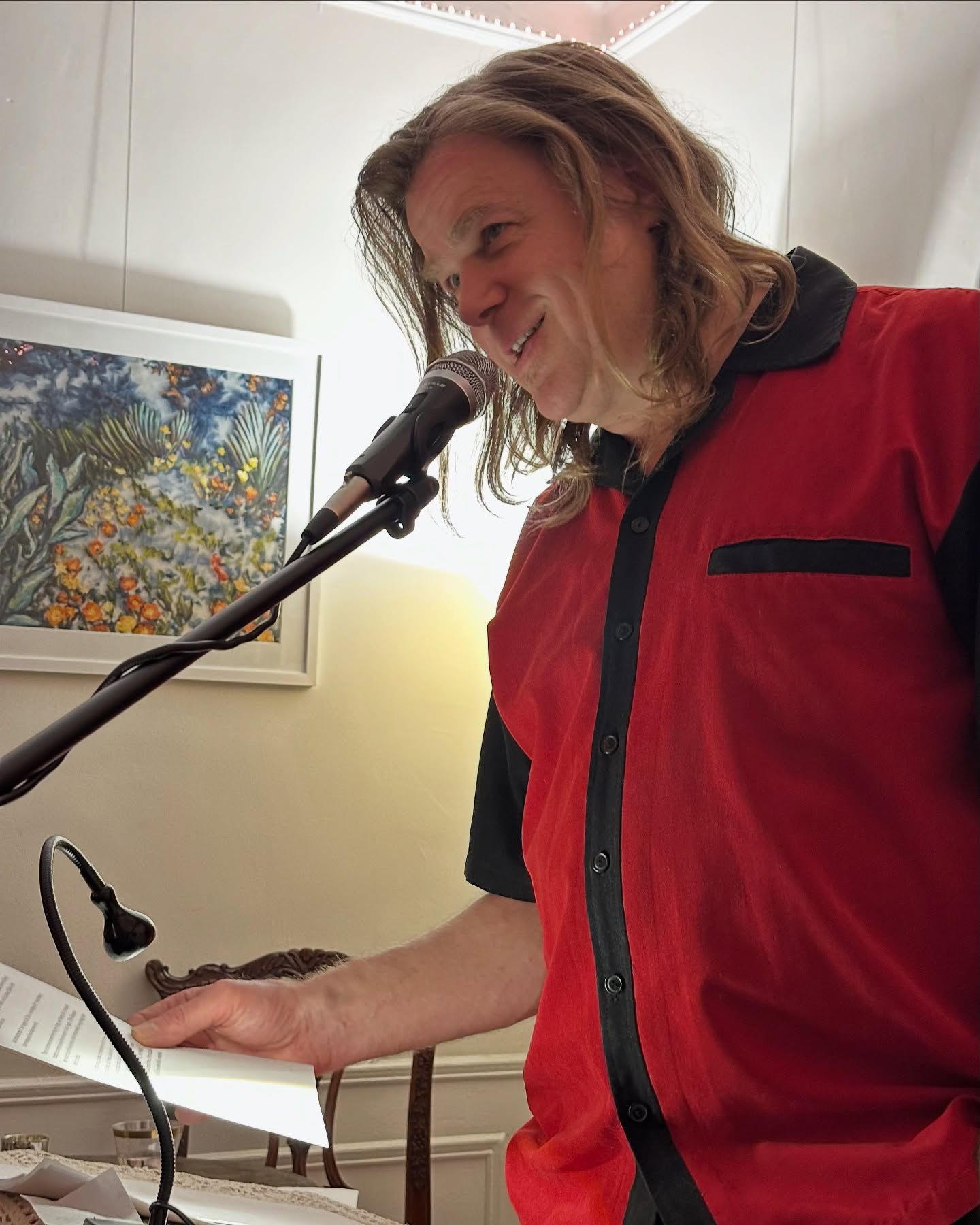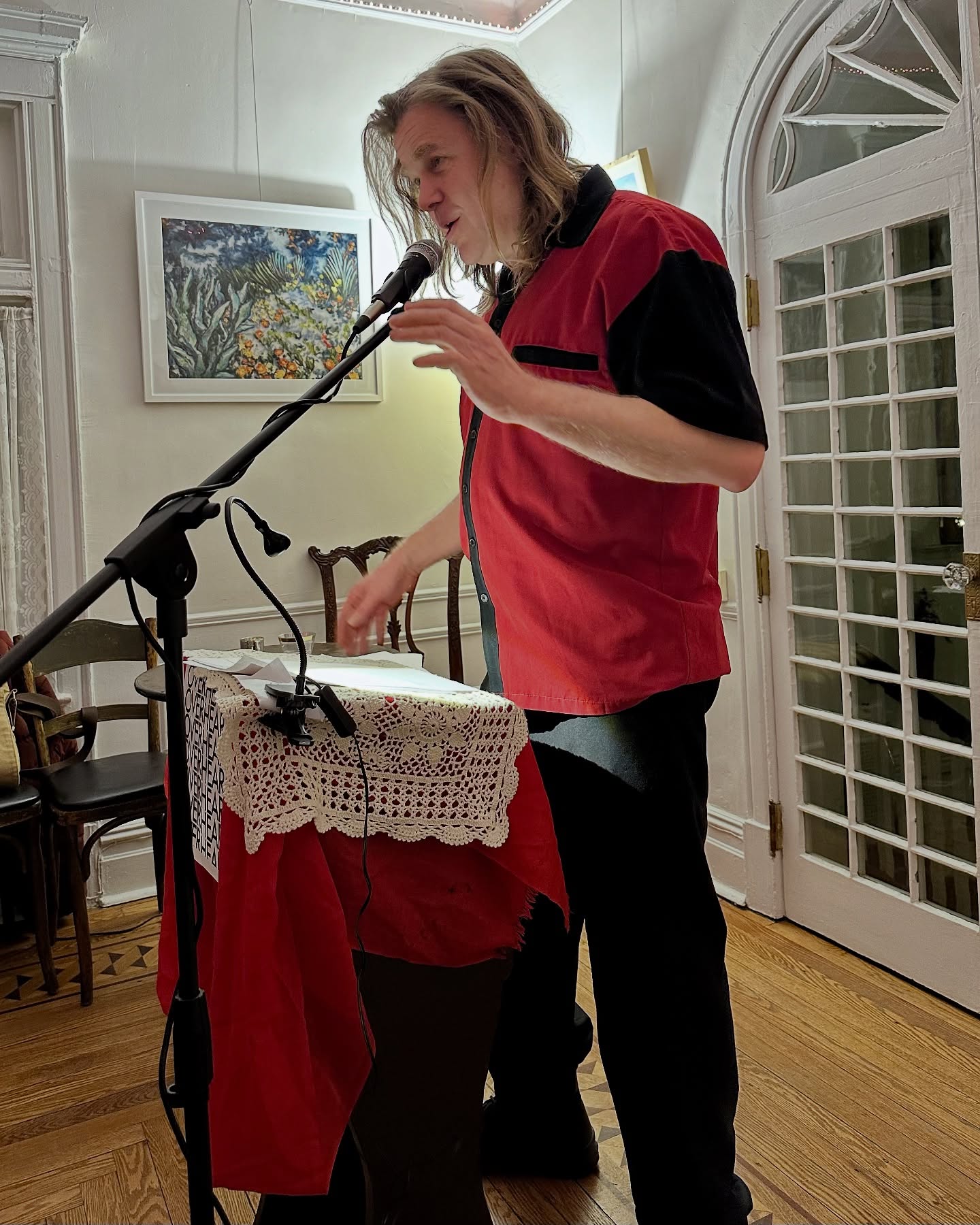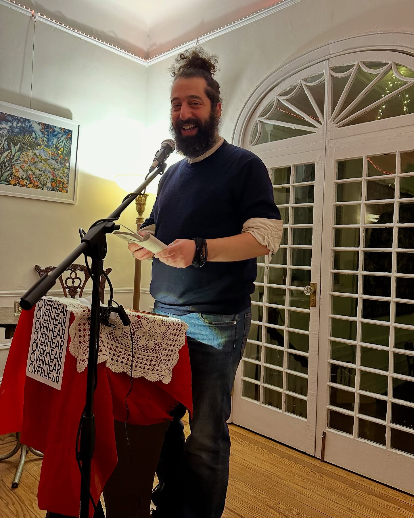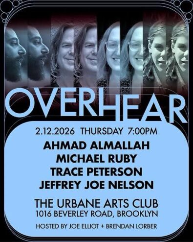 On February 12, 2026, I had the pleasure of attending the OVERHEAR reading hosted by Joe Elliot and Brendan Lorber at its new location in Brooklyn at 1016 Beverly Road. It’s easy for me to get to. I jump on the Q at Union Square, get off at the Beverly Road stop, walk a few blocks, and I’m there. It’s a beautiful art gallery of a space with several rooms and plenty of seats.
