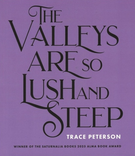 Trace Peterson’s new book, The Valleys Are So Lush And Steep, is published by Saturnalia Books. You can check it out here: